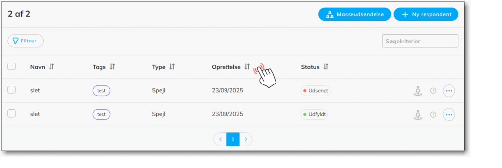 2. ”Oprettelse”; som du kan sortere ud fra, beskriver ikke længere hvornår respondenten (personen) blev oprettet, men hvornår invitationen til FokusProfilen blev udsendt (spørgeskemaet).