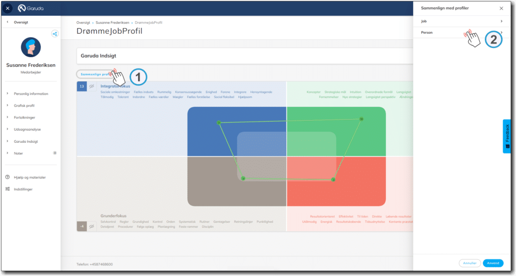 Vi arbejder løbende på at forbedre din anvendelse af FokusProfilen, for at gøre det mere inspirerende, nemt, intuitivt og værdifuldt for dig som bruger. Vi inkluderer løbende input fra vores fokus-grupper samt feedback fra brugere og respondenter. Vi håber du finder dem interessante og står naturligvis til rådighed ved eventuelle spørgsmål på support@garuda.dk eller tlf. +45 87 46 86 00.