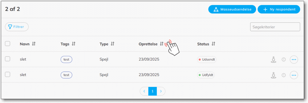 2. ”Oprettelse”; som du kan sortere ud fra, beskriver ikke længere hvornår respondenten (personen) blev oprettet, men hvornår invitationen til Garuda Logik blev udsendt (spørgeskemaet).