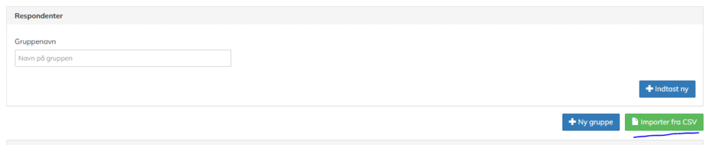 Vælg en af nedenstående standard .CSV-filer og indsæt egne data. Herefter gemmer du filen på en ønsket placering og vælger ”Import fra CSV” > Vælg den navngivne fil > Åbn > Respondenter og gruppenavn oprettes nu automatisk.